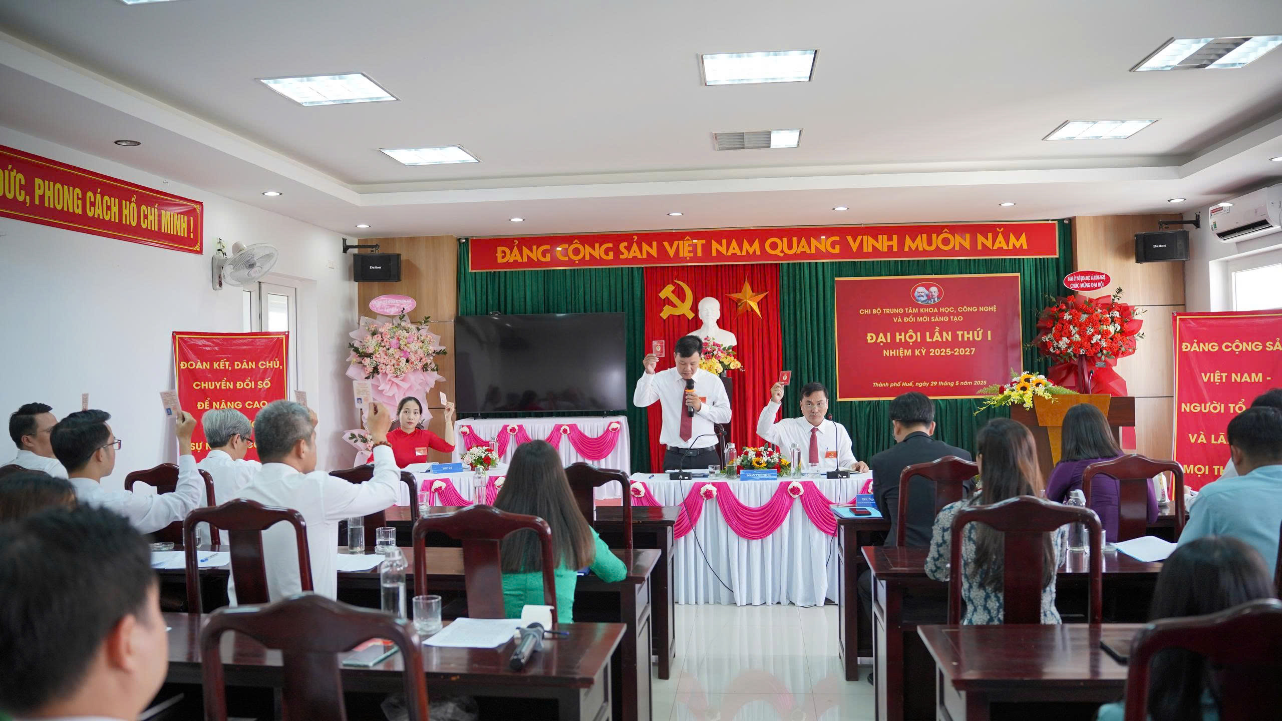 30/05/2025Dự và chỉ đạo Đại hội có đồng chí Nguyễn Xuân Sơn - Thành ủy viên, Bí thư Đảng ủy, Giám đốc Sở KH&CN thành phố Huế; cùng các đồng chí trong Ban Thường vụ Đảng ủy Sở, đại diện các Chi bộ, tổ chức đoàn thể và toàn thể đảng viên, quần chúng ưu tú của Trung tâm.