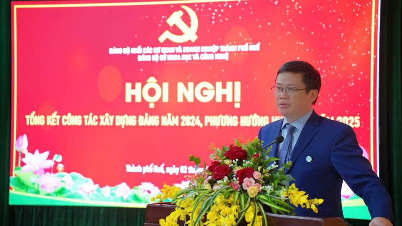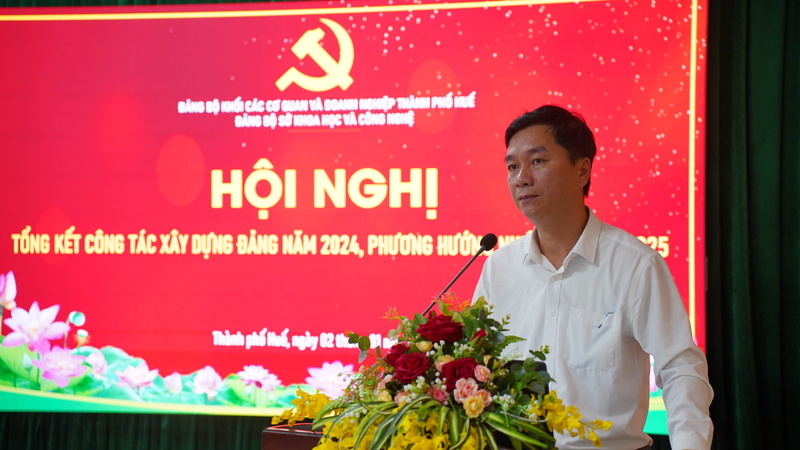 Tại Hội nghị, đồng chí Trần Thị Thuỳ Yên - Phó Bí thư Đảng uỷ, Phó Giám đốc Sở KH&CN đã báo cáo kết quả công tác xây dựng Đảng, xây dựng hệ thống chính trị năm 2024 và phương hướng nhiệm vụ năm 2025. Cụ thể, năm 2024, Đảng bộ Sở KH&CN đã lãnh chỉ đạo các Chi bộ, đảng viên, công chức, viên chức và người lao động hoàn thành tốt các nhiệm vụ đề ra. Công tác chính trị, tư tưởng được quan tâm, nghiêm túc tổ chức nghiên cứu, quán triệt thường xuyên, kịp thời các chủ trương, đường lối của Đảng, chính sách pháp luật của Nhà nước đến toàn thể đảng viên và quần chúng. Nhiều hoạt động mang tầm quan trọng được triển khai, trong đó, để phát huy hơn nữa tinh thần năng động, đoàn kết, sáng tạo, khắc phục những khó khăn, thách thức; phát huy tinh thần trách nhiệm và sức mạnh của hệ thống chính trị và toàn dân, quyết tâm thực hiện thắng lợi mục tiêu trở thành thành phố trực thuộc Trung ương trước năm 2025; là một trong những trung tâm lớn, đặc sắc của khu vực Đông Nam Á về văn hoá, du lịch và y tế chuyên sâu; một trong những trung tâm lớn của cả nước về khoa học - công nghệ, giáo dục và đào tạo đa ngành, đa lĩnh vực, chất lượng cao và là trung tâm văn hoá, giáo dục, du lịch và y tế chuyên sâu đặc sắc của Châu Á vào năm 2045, trong năm 2024, Đảng uỷ Sở KH&CN phối hợp với Liên hiệp các Hội Khoa học và Kỹ thuật tỉnh tổ chức Hội nghị Quán triệt định hướng xây dựng, phát triển tỉnh Thừa Thiên Huế đến 2030, tầm nhìn đến 2045 và xây dựng Thừa Thiên Huế trở thành trung tâm KH&CN của cả nước”. Hội nghị do đồng chí Phan Ngọc Thọ - Nguyên Phó Bí thư Thường trực Tỉnh uỷ chủ trì và trực tiếp quán triệt, tuyên truyền.