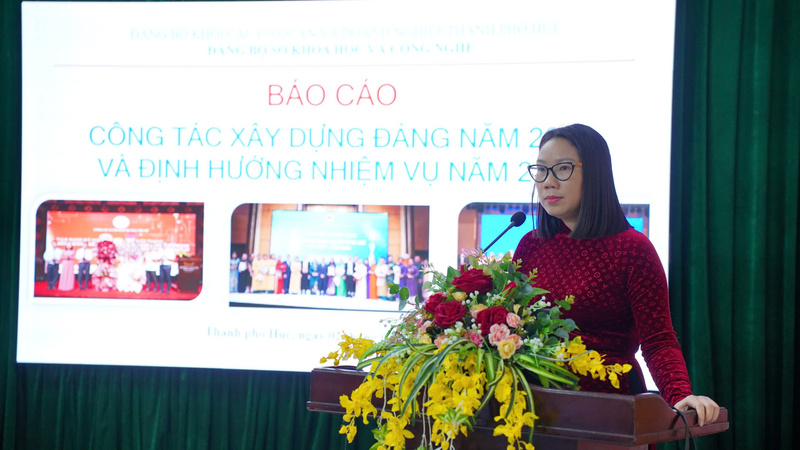 Đồng chí Trần Thị Thuỳ Yên - Phó Bí thư Đảng uỷ, Phó Giám đốc Sở KH&CN đã báo cáo những kết quả đạt được công tác xây dựng Đảngvà phương hướng nhiệm vụ trong thời gian tới