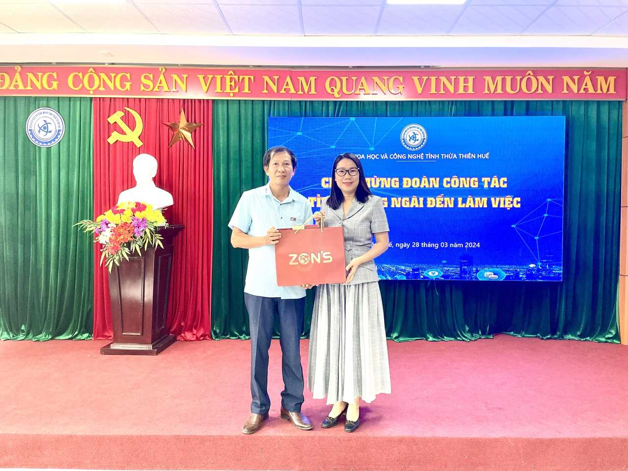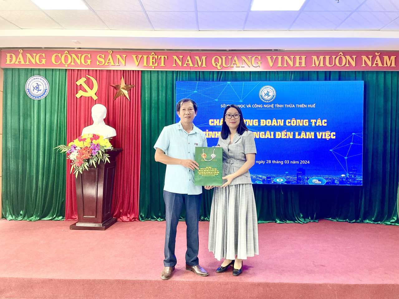 Đoàn công tác Sở KH&CN tỉnh Quảng Ngãi tặng quà lưu niệm cho Sở KH&CN tỉnh Thừa Thiên Huế